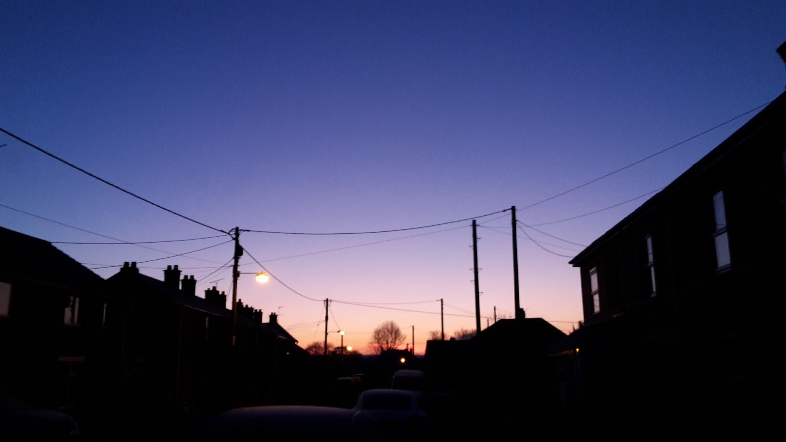 A very cold start with a thick layer of white in need of defrosting on the car before work. The sky was beautiful at 7:15 and worthy of a snap whilst waiting for the inside of the car to defrost. Not so good was the boiler breaking.